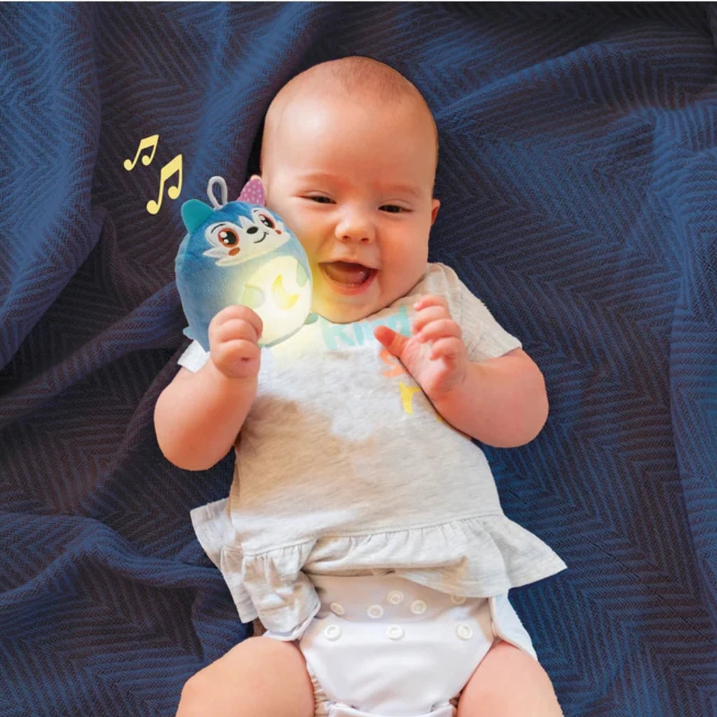 Tous les personnages de la gamme Twinkle Twinkle s'illuminent et activent des mélodies relaxantes et des bruits blancs conçus pour aider l'enfant à s'endormir.
