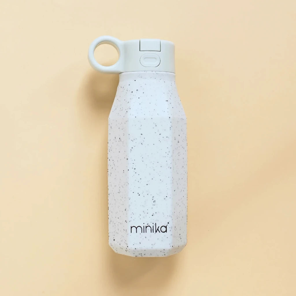 Bouteille d'eau en silicone avec paille et couvercle en plastique. Silicone alimentaire sans BPA. Laver avec du savon et un chiffon mouillé ou au lave-vaisselle. Idéal pour transporter les diner dans la boîte à lunch.