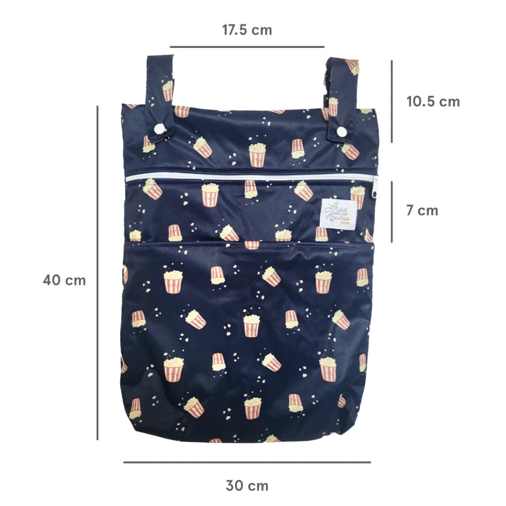 Ce sac a deux ouverture vous permet d'y ranger 10 couches. Il est très utile lors des sorties : vous pouvez y mettre vos maillots mouillés, transporter vos couches à la garderie et disposer de vos couches souillées.