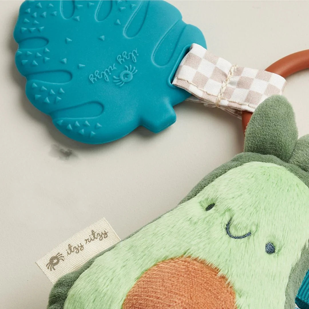 Grâce à un anneau pratique et pratique, bébé peut facilement se blottir contre son compagnon tout en apaisant ses gencives grâce à l'anneau de dentition. De plus, chaque personnage émet des bruits de froissement amusants et des rubans texturés pour un moment ludique et stimulant !