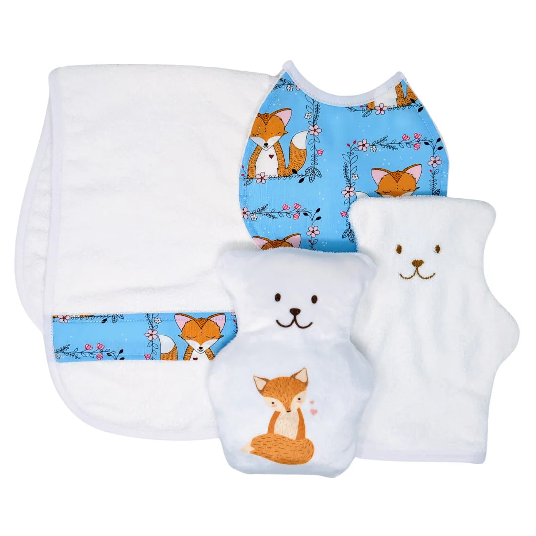 Avez-vous vu notre ensemble cadeau pour nouveau-nés prénommé le Agréable? Composé de quatre accessoires incontournables pour souhaiter la bienvenue à bébé, notre ensemble cadeau inclut :