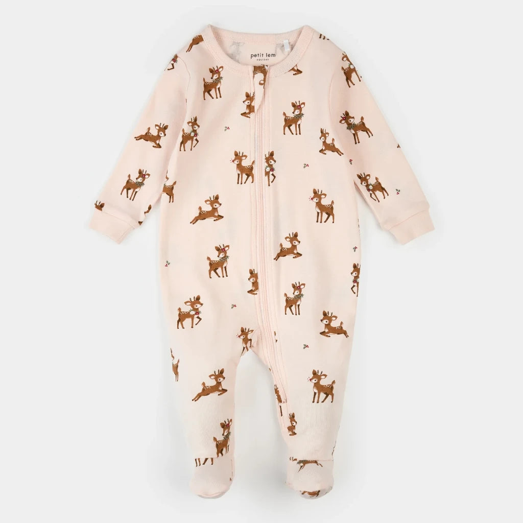 Adorable, confortable et prête pour l'arrivée du père Noël. Cette jolie dormeuse rose est ornée d'un adorable imprimé de rennes, parfait pour se blottir pendant le temps des Fêtes. Avec ses pieds intégrés et ses poignets côtelés, elle garde bébé bien au chaud, tandis que la fermeture éclair à double sens facilite les changements. Un pyjama assorti est offert pour la grande sœur, afin que toute la famille puisse profiter de la magie des Fêtes ensemble.