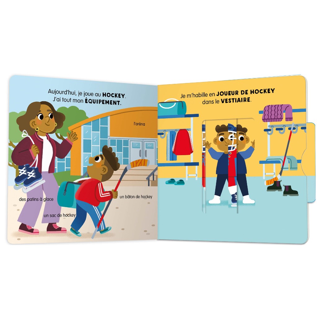 Découvre le hockey sur glace grâce à des mécanismes simples et faciles à activer ! Sur la dernière page, amuse-toi à deviner ce qui se cache sous les flaps.