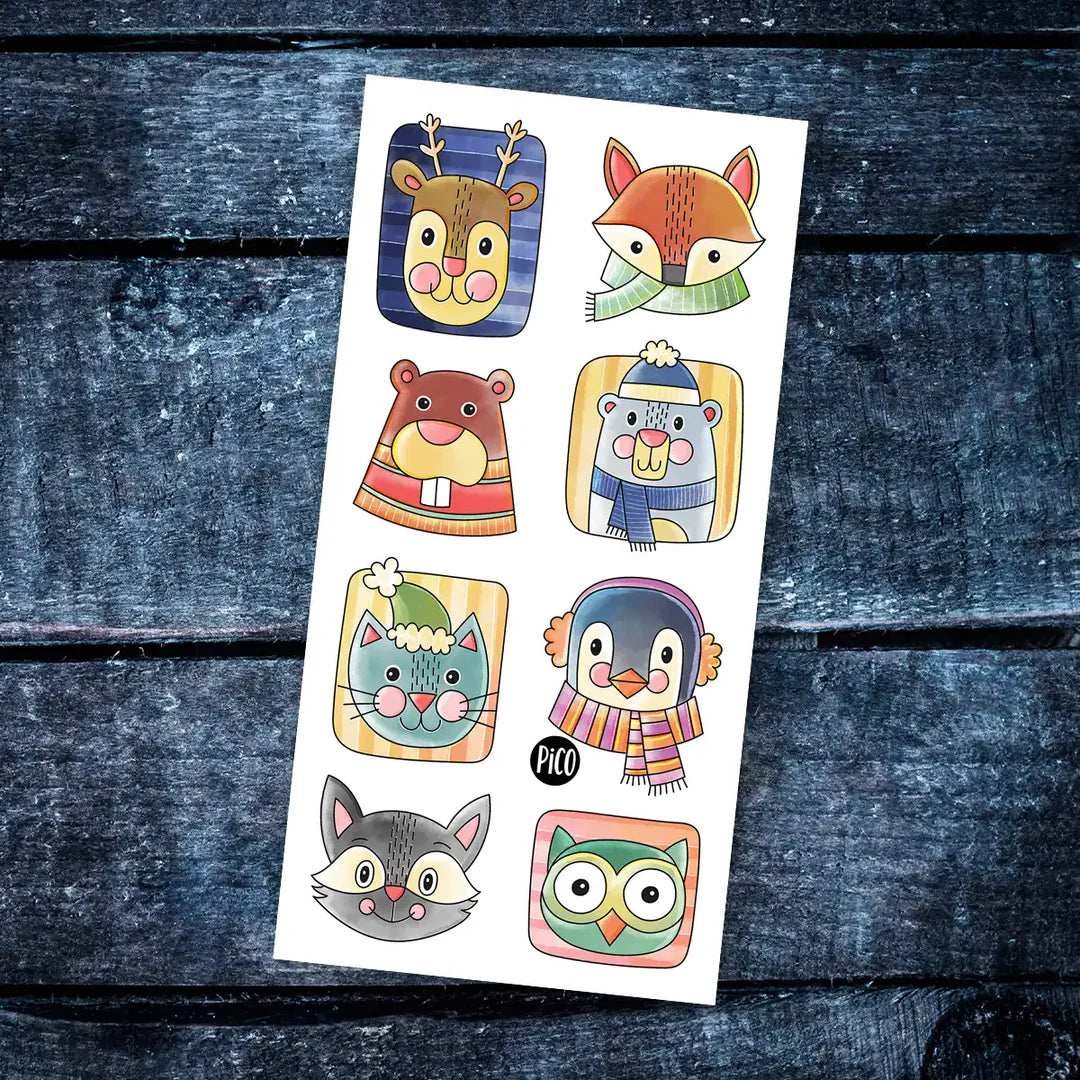 Les animaux hivernaux adorent l’hiver, la neige et le temps un peu plus frisquet. Le renne, le renard, le castor, l’ours, le chat, le pingouin, le raton et le hibou sont toujours prêts pour les activités hivernales. Ces tatouages sont une parfaite récompense pour apprivoiser l’arrivée de la neige et une surprise idéale pour faire sourire les petits et grands.