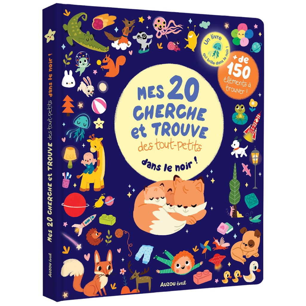 À travers 20 planches foisonnantes de détails, les petits partent à l’exploration des mondes du sommeil, des contes, de l'espace et de la nuit.Ils observent attentivement et retrouvent 7 éléments (+ une mascotte) bien cachés sur chaque planche.10 planches sont dotées de vernis phosphorescent et brillent dans le noir !