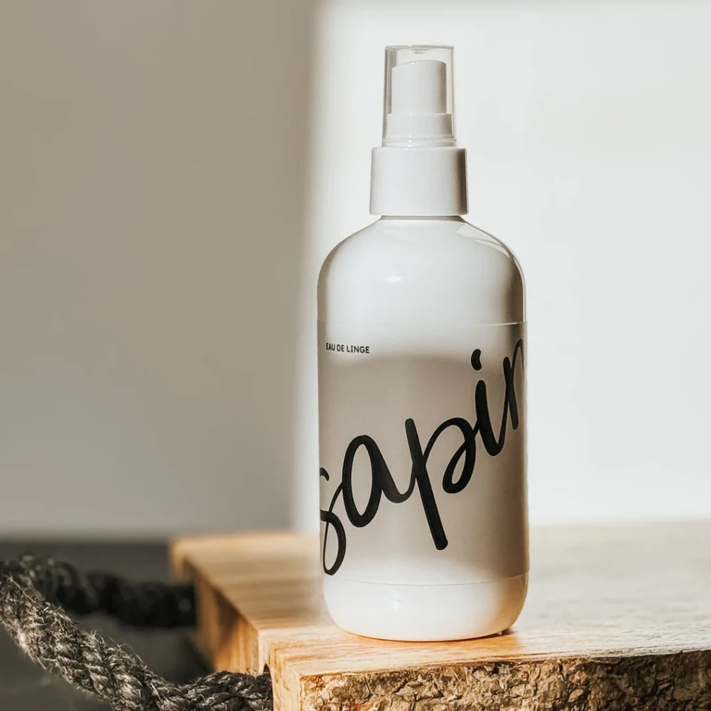 Découvrez l'eau de linge Sapin, une odeur renversante de forêt sauvage et de branches de sapin qui embaument les bois.