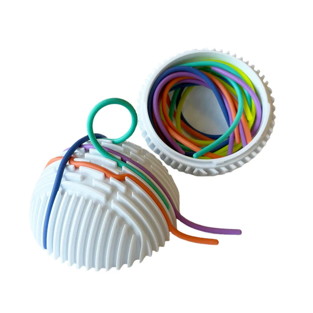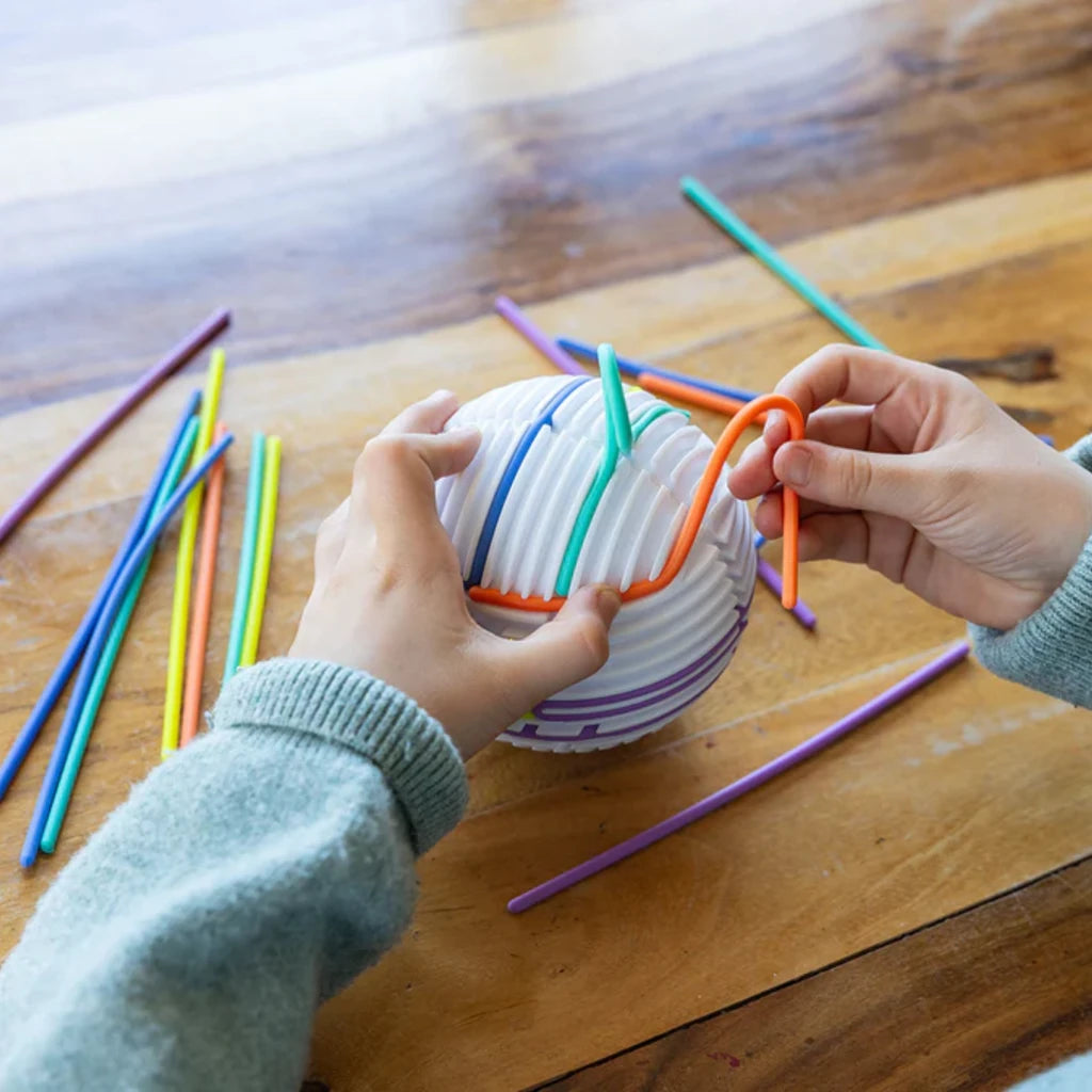 La sphère sensorielle est un outil ludique et apaisant qui stimule la concentration, la motricité fine et la créativité des enfants. Elle s’ouvre en deux pour révéler un espace de rangement pratique où glisser les ficelles incluses, ou pour se transformer en une base stable pour les enfants qui ont besoin de plus de support lors de l’activité. Les ficelles multicolores invitent à la manipulation, à l’exploration tactile et au jeu libre, tout en favorisant la régulation émotionnelle. Parfaite pour créer un moment de calme à la maison, en classe ou dans un coin sensoriel.