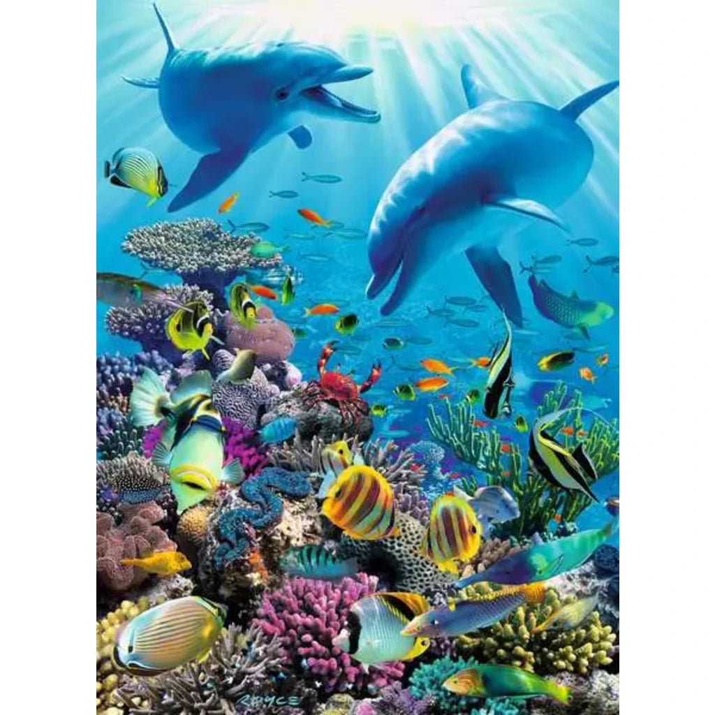 Avec M. Crabe qui raconte des histoires à dormir debout et qui fait rire les dauphins, chaque jour est une fête parmi les poissons tropicaux de notre puzzle « Aventure sous-marine » !