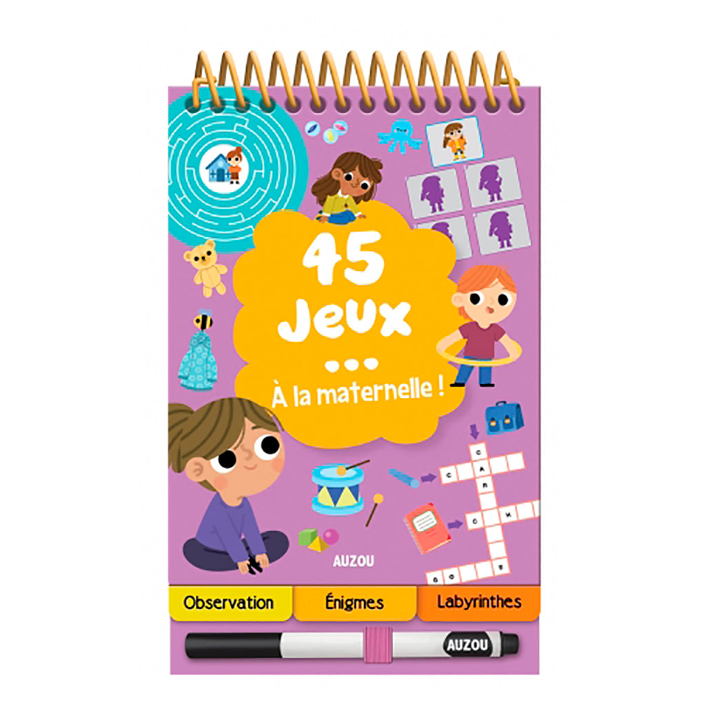 45 jeux sur le thème de la maternelle déclinés en 3 parties : 15 jeux d'observation, 15 énigmes et 15 labyrinthes.
