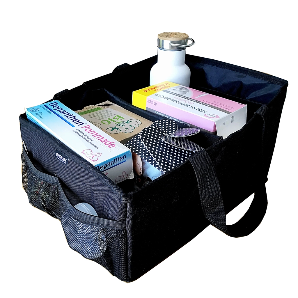 Placez le à l'arrière de votre voiture, à côté de votre enfant, à l'avant ou dans le coffre et profitez d'une organisation parfaite dans votre voiture. Il vous permet d'avoir facilement à votre disposition tout ce dont votre enfant a besoin, couches, lingettes, bouteille d'eau etc...