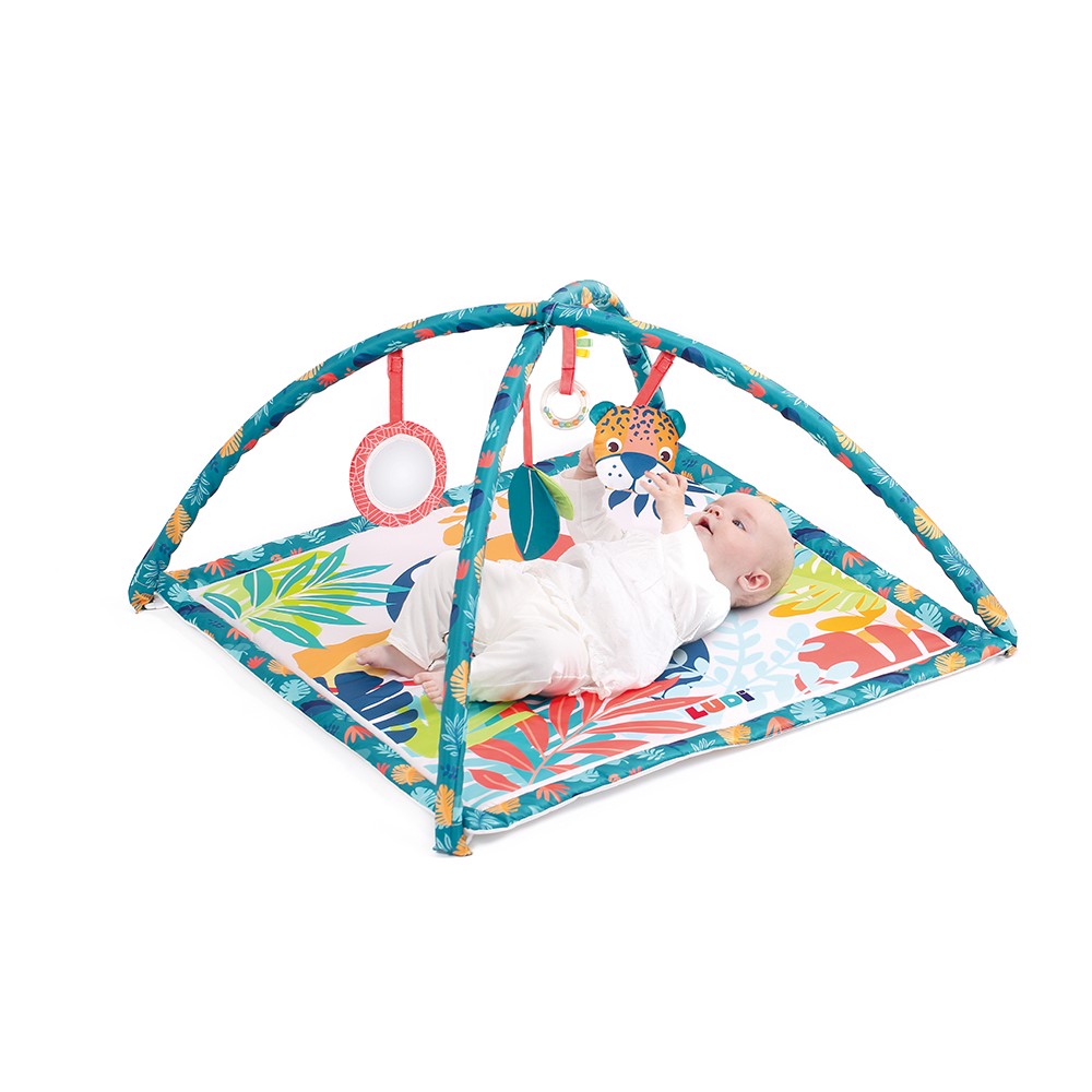 Tout moelleux, tout doux, le tapis d’éveil « Toucan » permet à Bébé de s’amuser et de se reposer sous le regard de ses parents. Multicolore avec des formes amusantes, cet espace dédié à l’éveil attire la curiosité de Bébé.Idéale pour stimuler la motricité de Bébé et développer sa dextérité, vous pourrez également éveiller l’acuité visuelle de votre enfant grâce aux 4 activités sensorielles amovibles présents sur les arches amovibles : miroir, papier froissé, anneau de dentition à bille, peluche d’activité sonore.