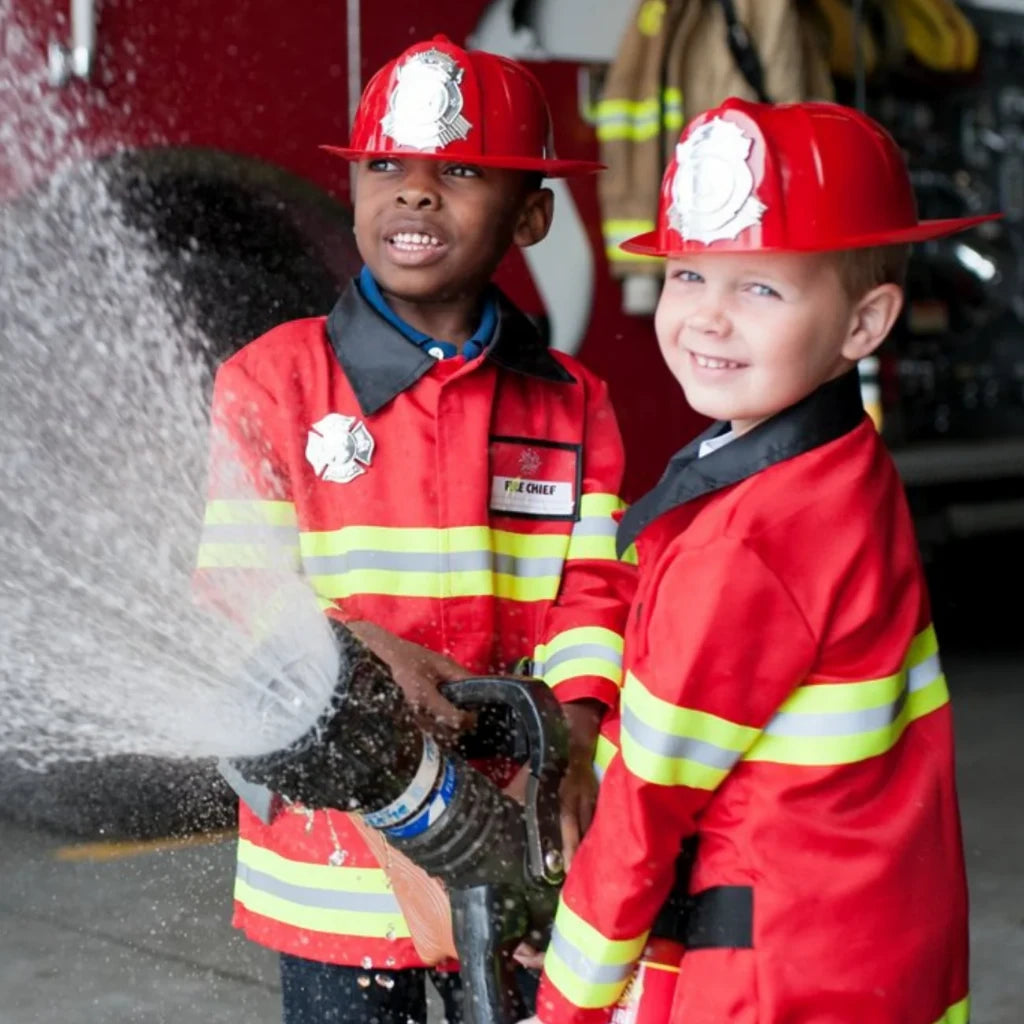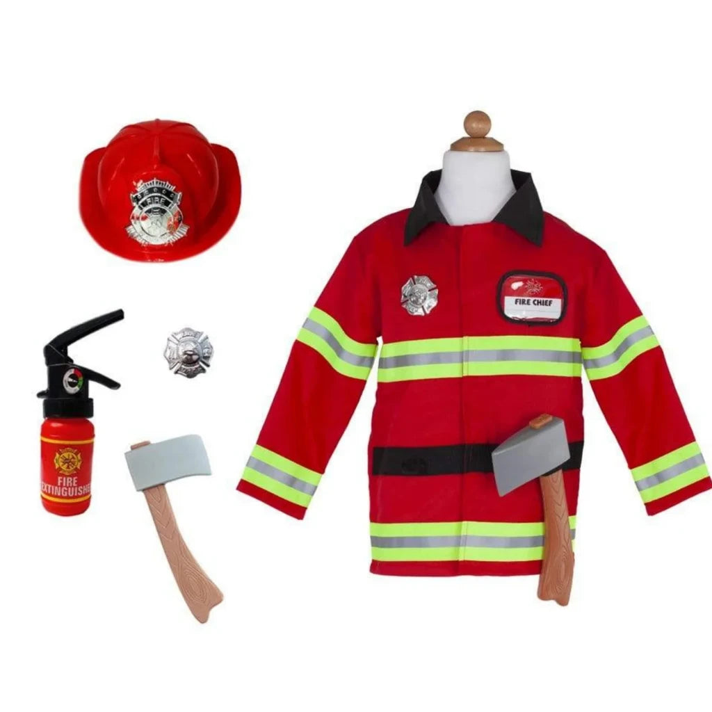 Et s'associer pour combattre des feux de prétendus féroces dans cette tenue de pompier complète. Regardez la pièce de cet ensemble complet de déguisés en 5 pièces. L'ensemble comprend un manteau rouge avec des détails de bande réfléchissante, un chapeau de pompier en plastique avec emblème, un insigne de nom personnalisé amovible, jouer à la hache et jouer à l'extincteur (qui est en fait un pistolet à eau!). Le manteau est même livré avec l'insigne de caserne en plastique assorti. Tous nos grands costumes de carrière de prétendants sont emballés dans un sac de vêtements bleu réutilisable pour un rangement facile. Ensemble de 5 pièces: manteau, casque, hache, extincteur et badge