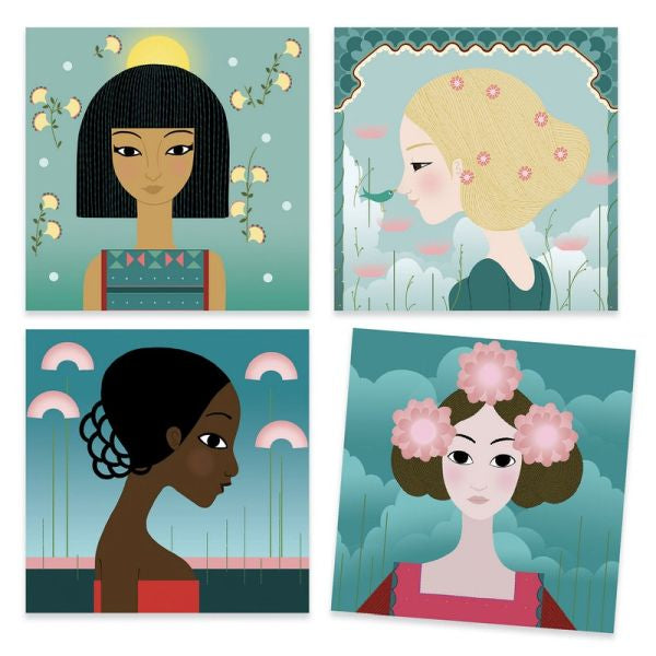 Un coffret de tampons inédit où l'enfant compose des motifs pour décorer tenues et chevelures de ces princesses du monde. Il associe les motifs et les positionne avec précision grâce aux tampons transparents qui permettent de toujours voir sa création. Au fil de la réalisation, les jeunes filles se parent d'ornements subtils et raffinés.
