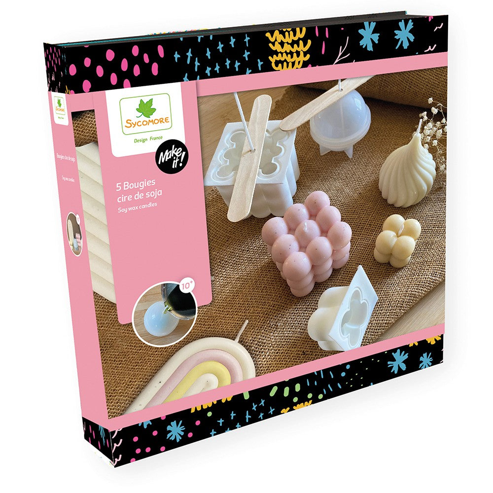 Dans cette jolie boîte, retrouve tout le nécessaire pour réaliser 5 bougies originales et tendances.