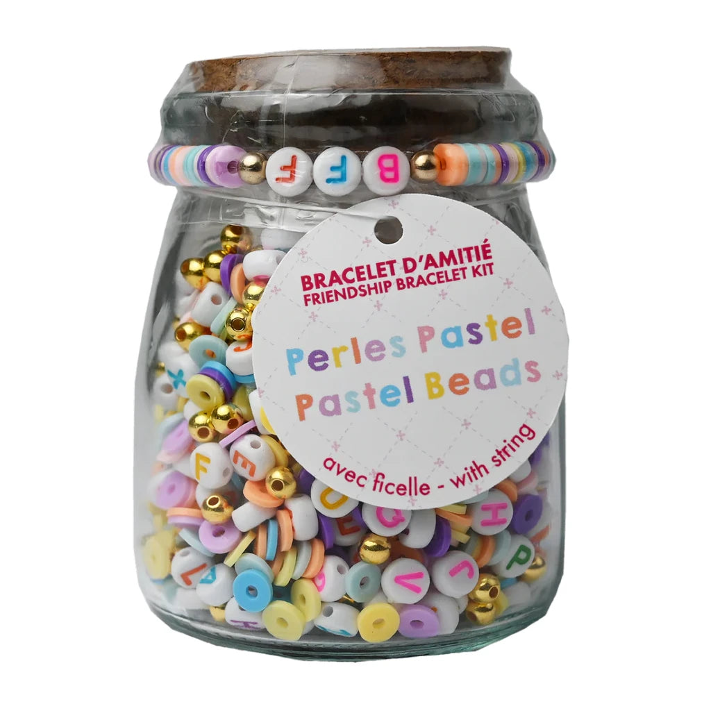 Un item ludique et facile pour les créateurs débutants. Présenté dans un pot en verre réutilisable avec bouchon de liège, rempli de perles en polymère colorées et d'une ficelle prête à l'emploi. Idéal pour les ateliers créatifs, les cadeaux ou les anniversaires.