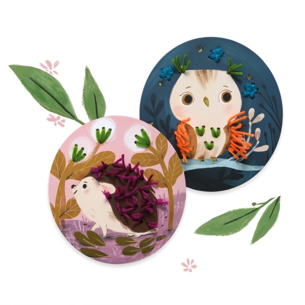 Une première initiation à la broderie ! L’enfant apprend 3 points de broderie différents mais très simples. 4 tableaux animaux brodés pour décorer sa chambre.