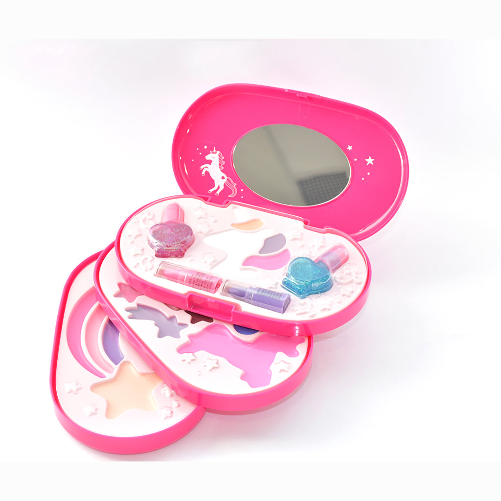 - Comprend : 1 coffret, 2 vernis à ongles, 2 rouges à lèvres, 4 brillants à lèvres, 5 ombres à paupières, 6 fards à joues et 4 pinceaux.
