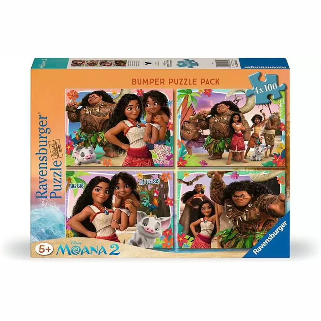 Un pack de puzzles colorés de 4 x 100 pièces basé sur le nouveau film Disney pour 2024 – Moana 2 !