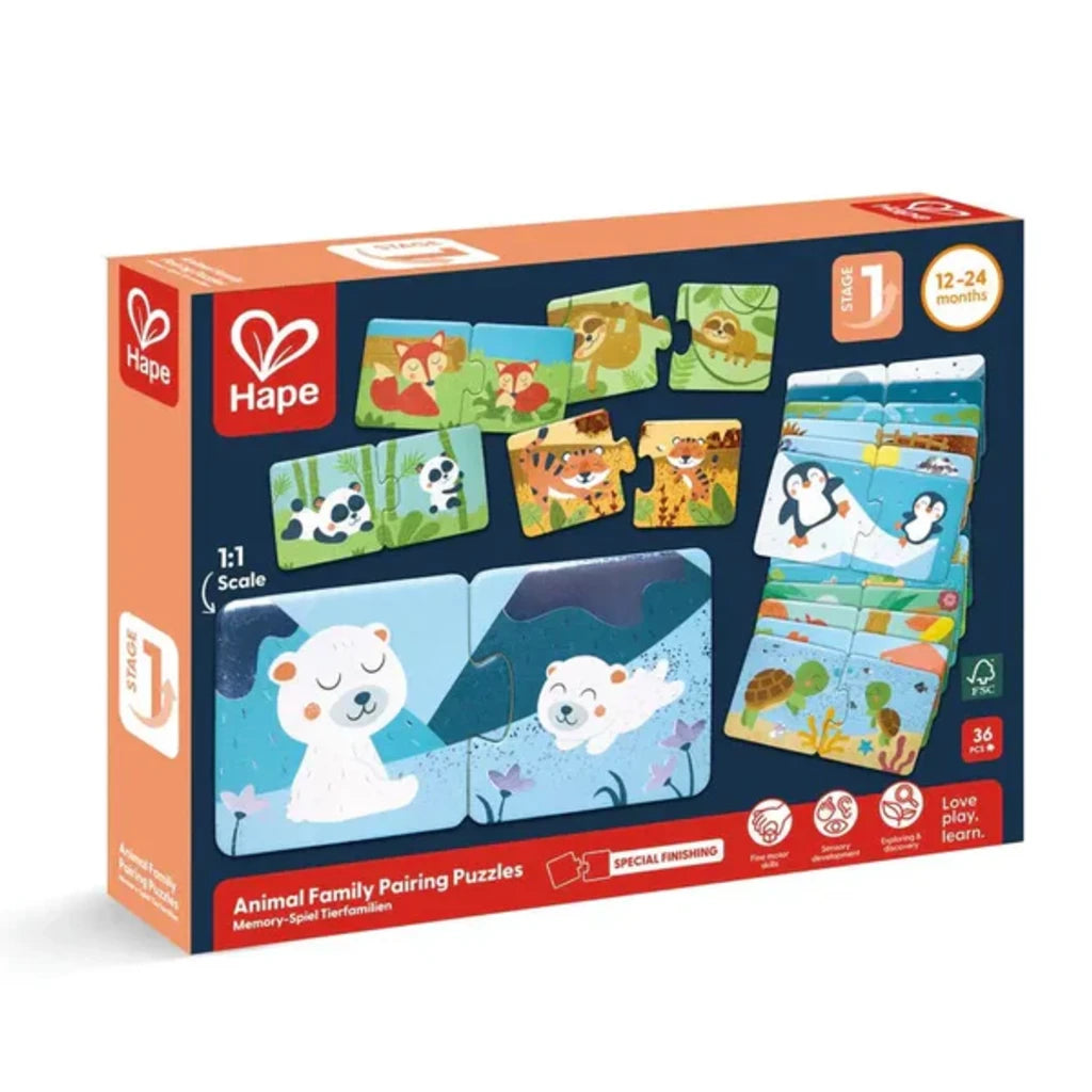 Défi créatif : Cet ensemble de puzzle de 36 pièces comprend 18 paires d'animaux, offrant une variété de défis pour garder les enfants engagés et favoriser l'apprentissage indépendant.