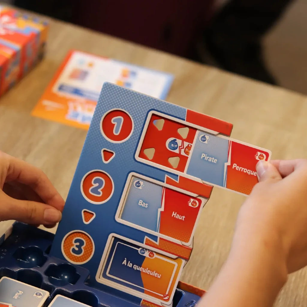 Observez l’équipe adverse pour deviner vos mots plus rapidement et prendre ainsi l’avantage ! Devinez votre mot final pour gagner la course. La première équipe à gagner 4 manches remporte la partie.
