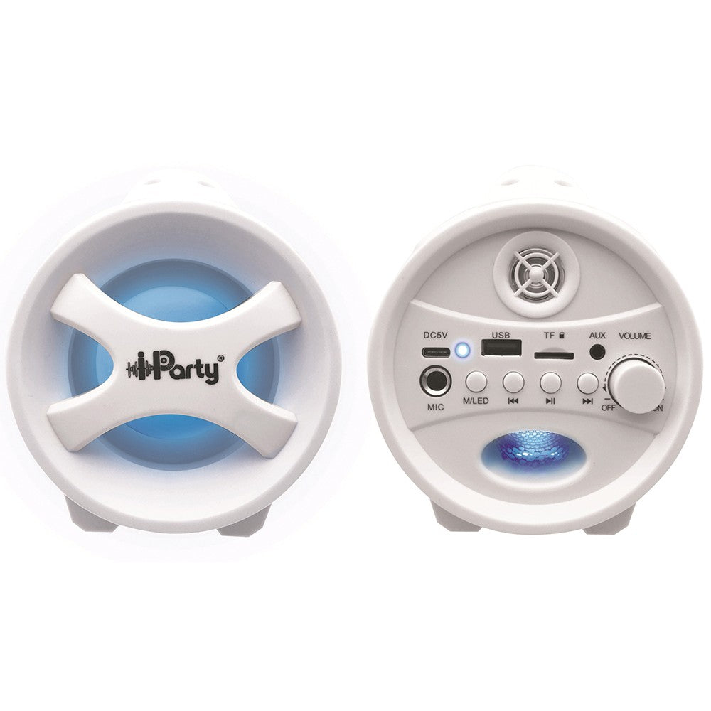 L’enceinte devient karaoké grâce à son micro fourni. Avec port USB, port carte micro SD/TF (jusque 32 Go) et port aux-in pour diffuser sa musique, ses podcasts et ses MP3 depuis n'importe quelle source audio! Avec radio FM et scan des stations de radio. Fonction True Wireless Stereo (TWS) : synchronisez-en 2 ensemble pour profiter d’un son stéréo! Batterie rechargeable 1200 mAh, se recharge via câble micro USB (fourni). Jusqu'à 3 heures d'utilisation en continu.