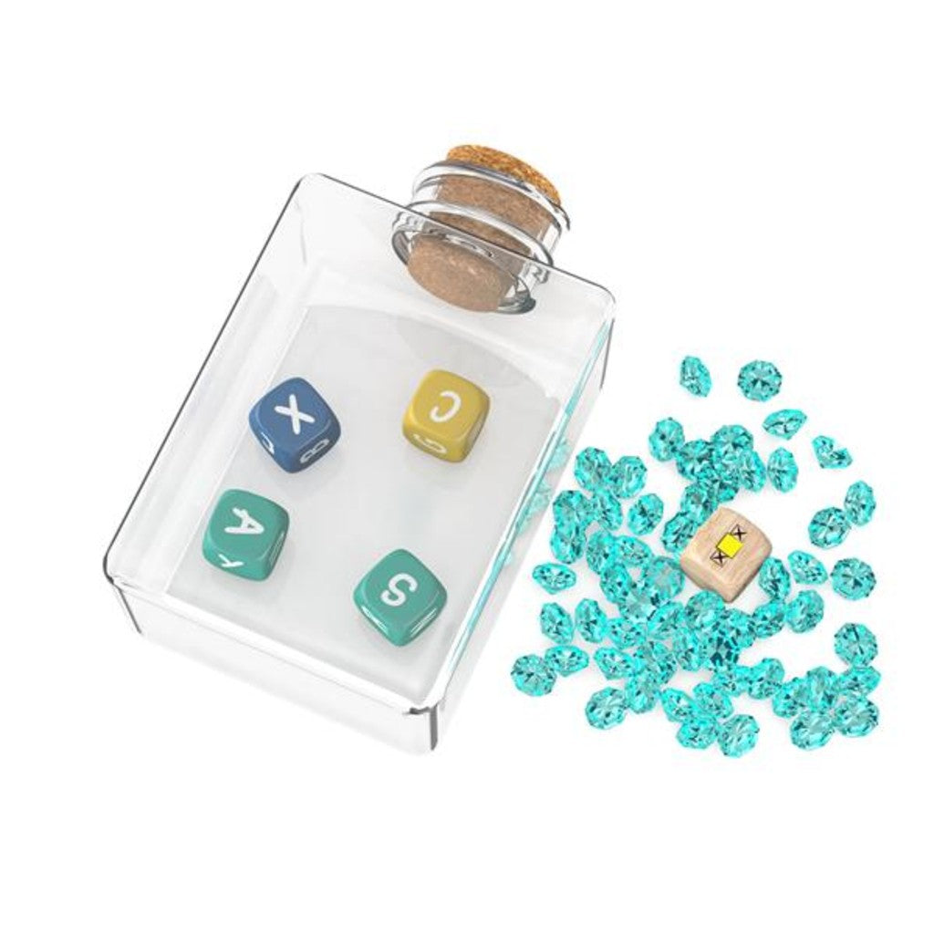 Soyez le premier joueur à trouver un mot qui contient toutes les lettres affichées par les dés dans la bouteille. Un mot correctement trouvé vous rapporte 1 diamant. Le premier joueur à récolter 8 diamants remporte la partie.