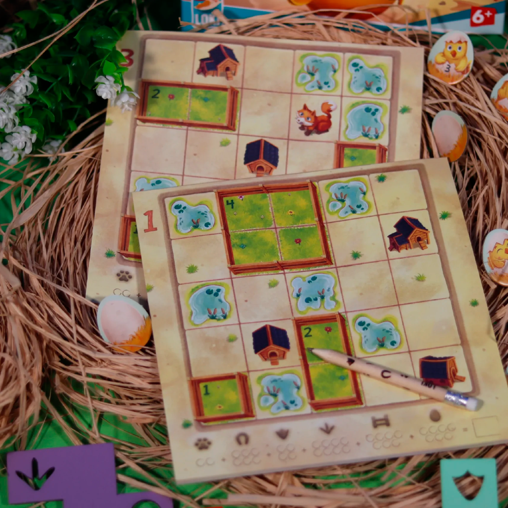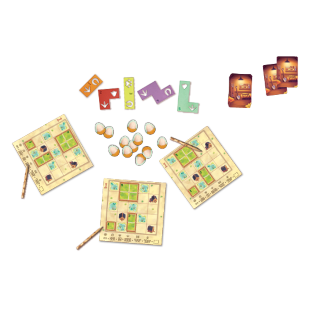 En tant que fermier, utilise les tuiles Pochoir pour placer au mieux les animaux dans ta ferme. Fais toutefois attention aux préférences de chacun si tu veux cumuler le plus de points de