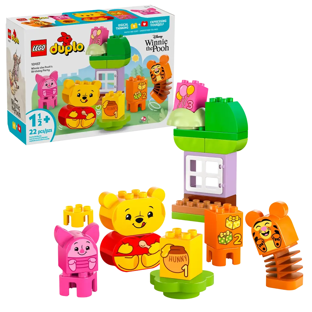 Les enfants d’âge préscolaire s’imaginent assister à une fête avec les 3 figurines LEGO DUPLO : Winnie l’ourson, Tigrou et Porcinet. Chaque personnage a un visage à double face avec des expressions différentes, suscitant un jeu créatif et une création d’histoires sans limites. Cette fonctionnalité amusante propose également des activités d’apprentissage socio émotionnel pour les tout-petits alors qu’ils explorent les différentes émotions que les tout-petits peuvent ressentir lors des fêtes, de la joie d’ouvrir des cadeaux à l’inconfort après avoir mangé trop de friandises!