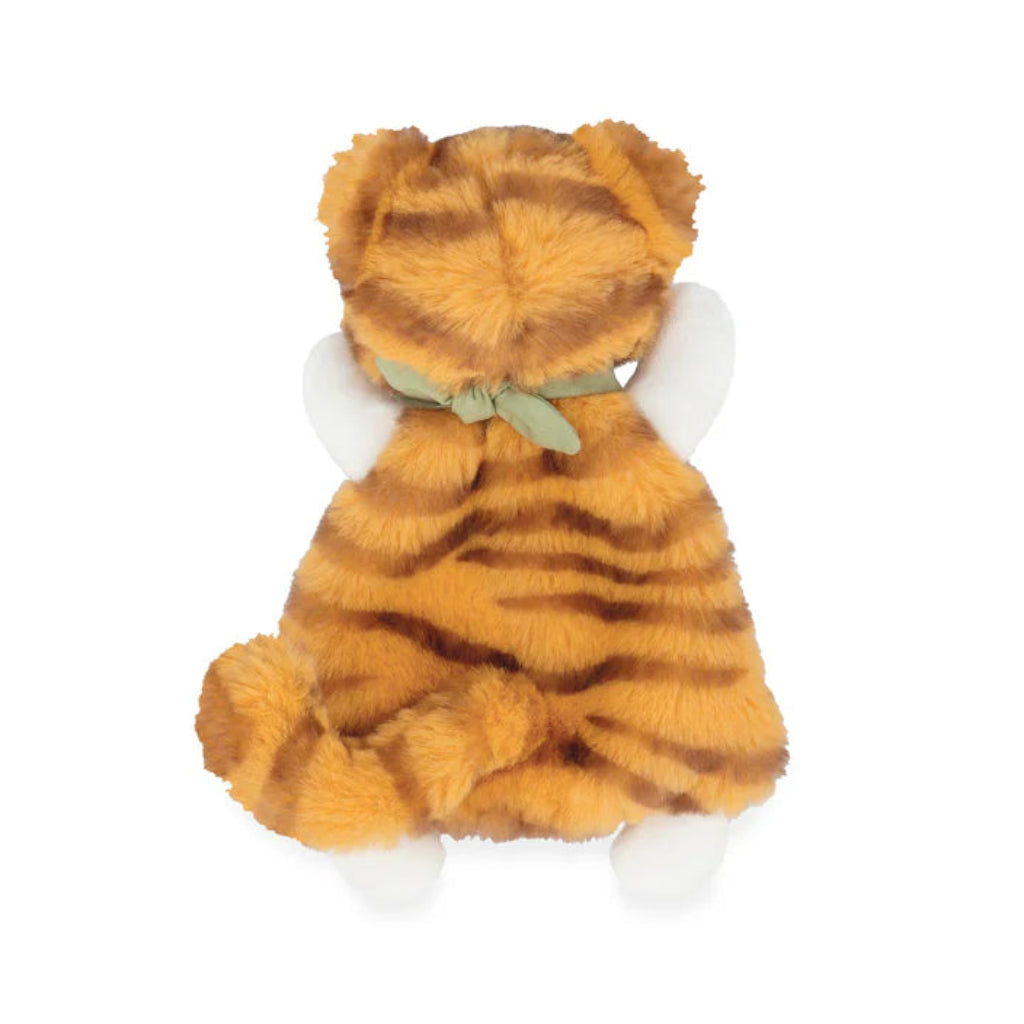 Doudou Papaye tigre de Kaloo. Papaye se transforme en adorable doudou plat extra doux et mignon pour accompagner bébé en douceur dès les premiers mois de sa vie..