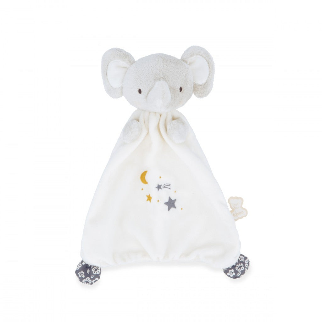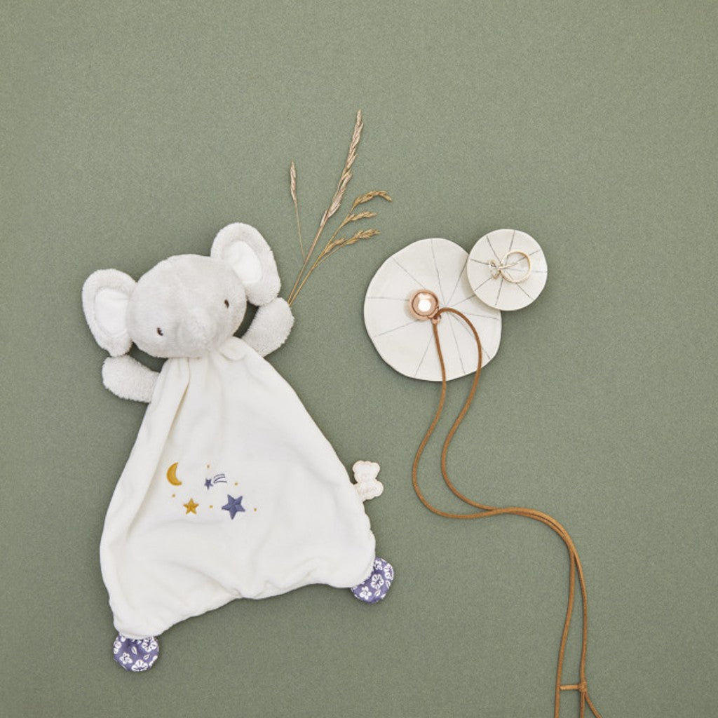 À la naissance de bébé, il trouve alors réconfort grâce à son doudou éléphant qui produit le même son, ce qui créé un lien continu et un cocon de douceur. En plus d’être rassuré, bébé s’éveille aux sons dans un environnement stimulant et sécurisant. Le doudou éléphant mesure 24 cm, il est orné de broderies sur son ventre illustrant la comptine « Brille, brille petite étoile ». Les matériaux entrant dans la composition de ce doudou ont été choisis avec soin : 76% de matières recyclées, y compris le rembourrage. Le doudou éléphant peut être lavé en machine à 30°. L’ensemble de ces produits dédiés à l’apaisement et l’éveil de bébé sont présentés dans un joli coffret cadeau personnalisable, grâce à l’encart disponible sous le couvercle.