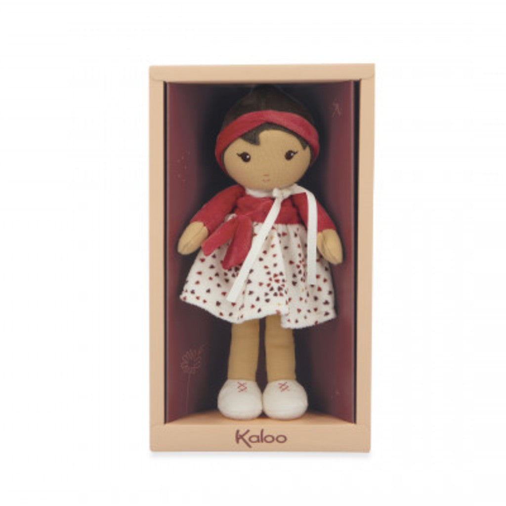 Faites la connaissance d’Émilie, une charmante poupée en tissu, dans son format 25 cm. Adaptée à bébé dès la naissance, elle fait partie de la collection de poupées Tendresse de Kaloo. La poupée Émilie porte une belle jupe à volants ornée de cœurs, reflétant sa joie de vivre et son amour pour la vie. Avec son adorable cache cœur rouge, assorti à son bandeau, elle est prête pour toutes les aventures.