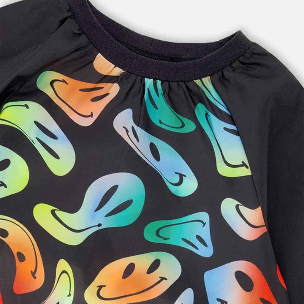 Deux - Tablier scolaire - Bonhommes Sourire multicolores - Noir