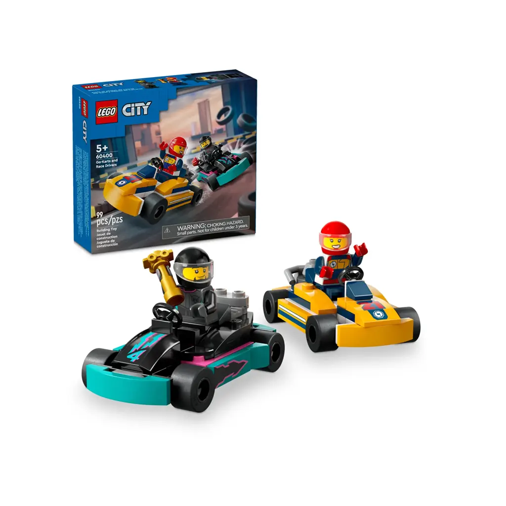 Les amateurs de jouets de voitures de course peuvent profiter d’une action sans fin avec ce jeu de véhicules LEGO® City Karts et pilotes de course pour les enfants de 5 ans et plus. Les petits coureurs peuvent choisir entre 2 figurines de pilote avant de jouer à des compétitions passionnantes avec les mini karts orange et turquoise.