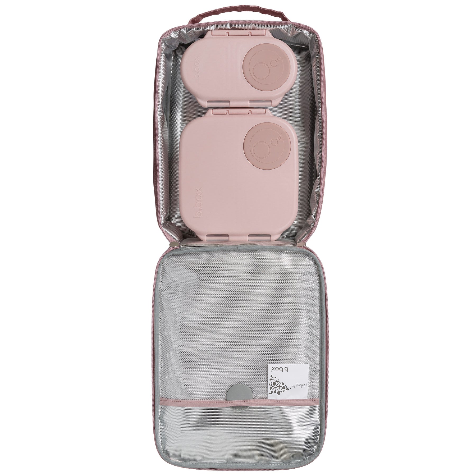La base intérieure hygiénique et sans couture permet un nettoyage facile et en profondeur et les poches latérales respirantes maintiennent les bouteilles de boisson en place (convient à la plupart des bouteilles de boisson b.box)