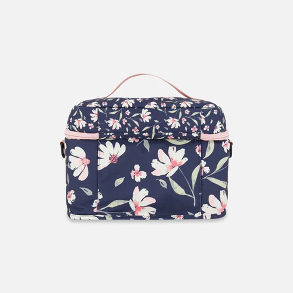 Transportez des repas sains et des collations savoureuses avec style grâce à cette boîte à lunch écoresponsable marine à imprimé de fleurs. Confectionnée dans un tissu fabriqué à partir de bouteilles en plastique recyclées, elle est parfaitement dimensionnée pour accueillir tous types de contenants, avec un compartiment principal isolant qui garde les aliments au chaud ou au froid. Une poche intérieure en filet zippée permet de ranger serviettes, ustensiles et petits essentiels, tandis qu’une poignée supérieure et une bandoulière amovible offrent plusieurs options de transport.