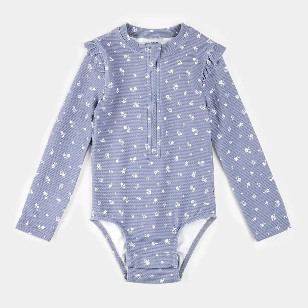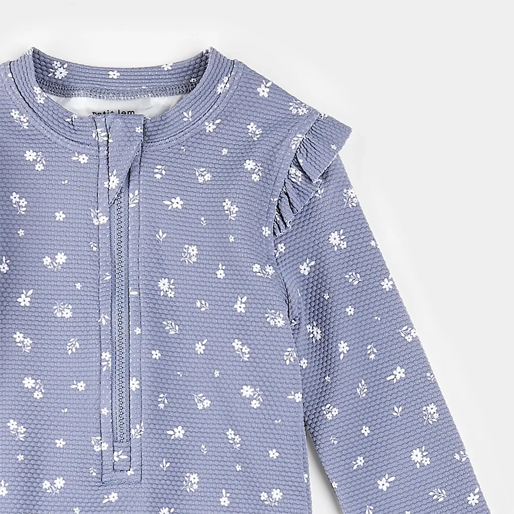 Petit lem - Maillot une-pièce manches longues - Fleurs des champs - Bleu gris