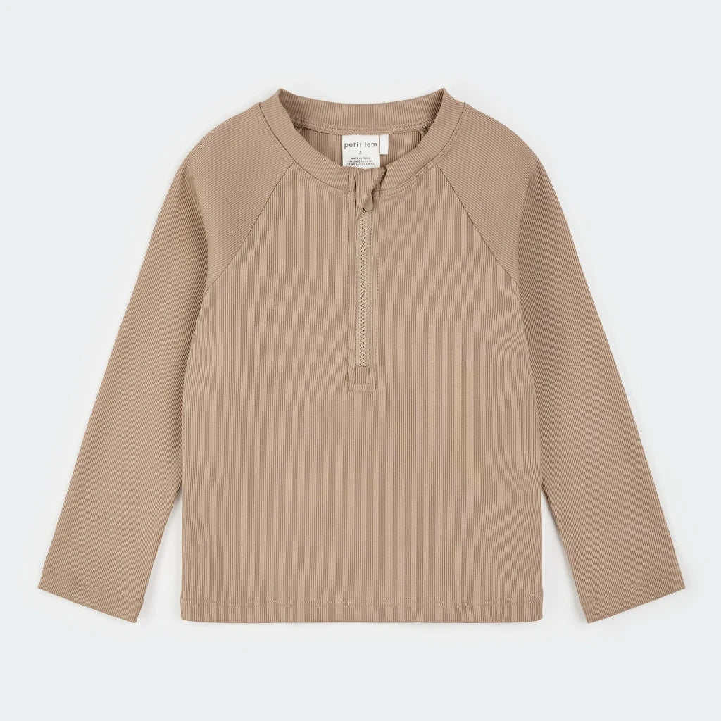 Classique, confortable et prêt pour le soleil, ce maillot dermoprotecteur texturé taupe protège les tout-petits à chaque éclaboussure et aventure ensoleillée. Confectionné dans un tissu doux, extensible et à séchage rapide, il facilite la transition entre les baignades et les pique-niques. Le haut à manches longues se coordonne parfaitement avec nos chaussures d'eau et shorts de bain en seersucker, pour tout assortir avec les maillots de bain disponibles pour le reste de la famille.