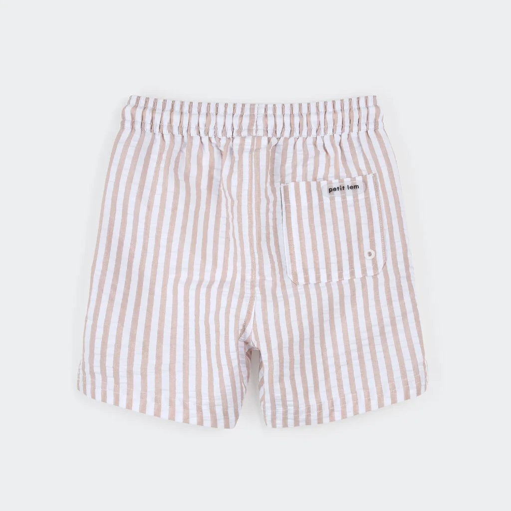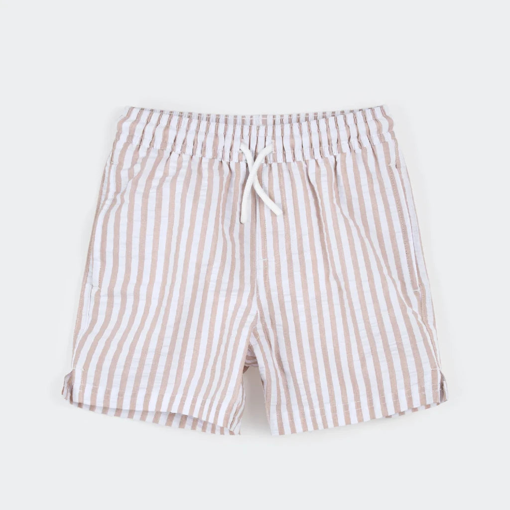 Avec une allure intemporelle inspirée des plages de sable, ce maillot de bain en seersucker taupe est naturellement stylé et s'agence avec les maillots de bain disponibles pour toute la famille. L'élastique à la taille permet de le remonter et de le baisser facilement pour s'habiller et se sécher, tandis que le cordon de serrage assure une bonne tenue pour jouer toute la journée. Associez-le à l'un de nos maillots dermoprotecteurs texturés pour plus de chaleur et de protection contre le soleil ou les eaux froides.