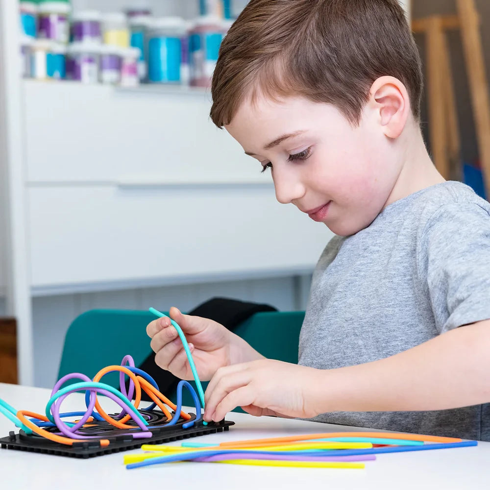 La plaque sensorielle offre une expérience tactile unique qui éveille les sens et favorise le développement moteur. Elle propose deux surfaces : un côté avec des points en relief pour explorer les textures, et un autre avec des pistes en forme de vagues pour un enfilage plus complexe. Les ficelles multicolores permettent de stimuler la coordination et la concentration à travers un jeu calme et engageant. La plaque est également accompagnée d’une pochette de transport pratique pour ranger les ficelles et l’emporter facilement partout, en classe, à la maison ou en déplacement. Un outil idéal pour les coins sensoriels, les activités d’apprentissage ou les moments de détente.