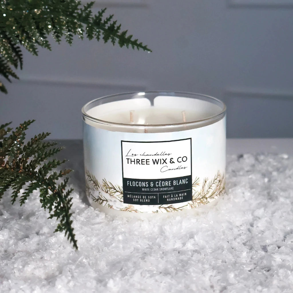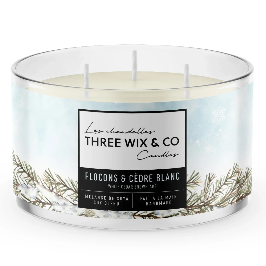 Three Wix - Chandelle de soya - Flocons et Cèdres Blanc
