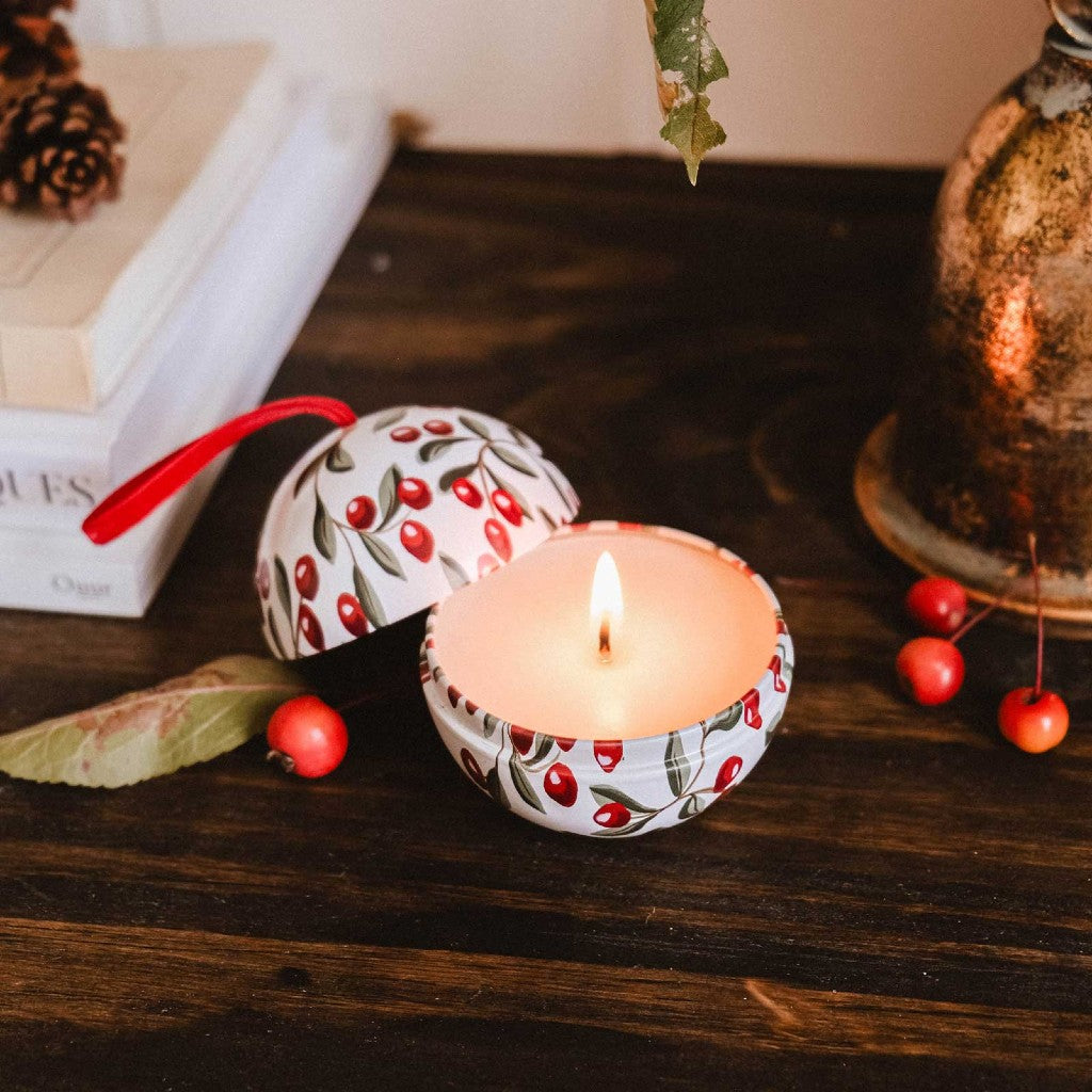 Chaque ornement est joliment illustré de baies rouges et de feuilles vert tendre, parfait pour suspendre à ton sapin ou intégrer à ta déco festive. Une fois la bougie consumée, garde cette jolie boule pour y cacher des friandises, de petits mots ou des souvenirs des Fêtes. Un petit trésor à redécouvrir année après année.