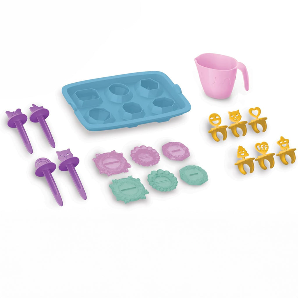 Il existe plusieurs ustensiles de cuisine testés pour les garçons et les filles à partir de 3 ans, avec une garantie de sécurité, y compris un pot, 6 moules à bagues, 6 bagues, une base en plastique pour travailler et 4 bâtonnets de chocolat