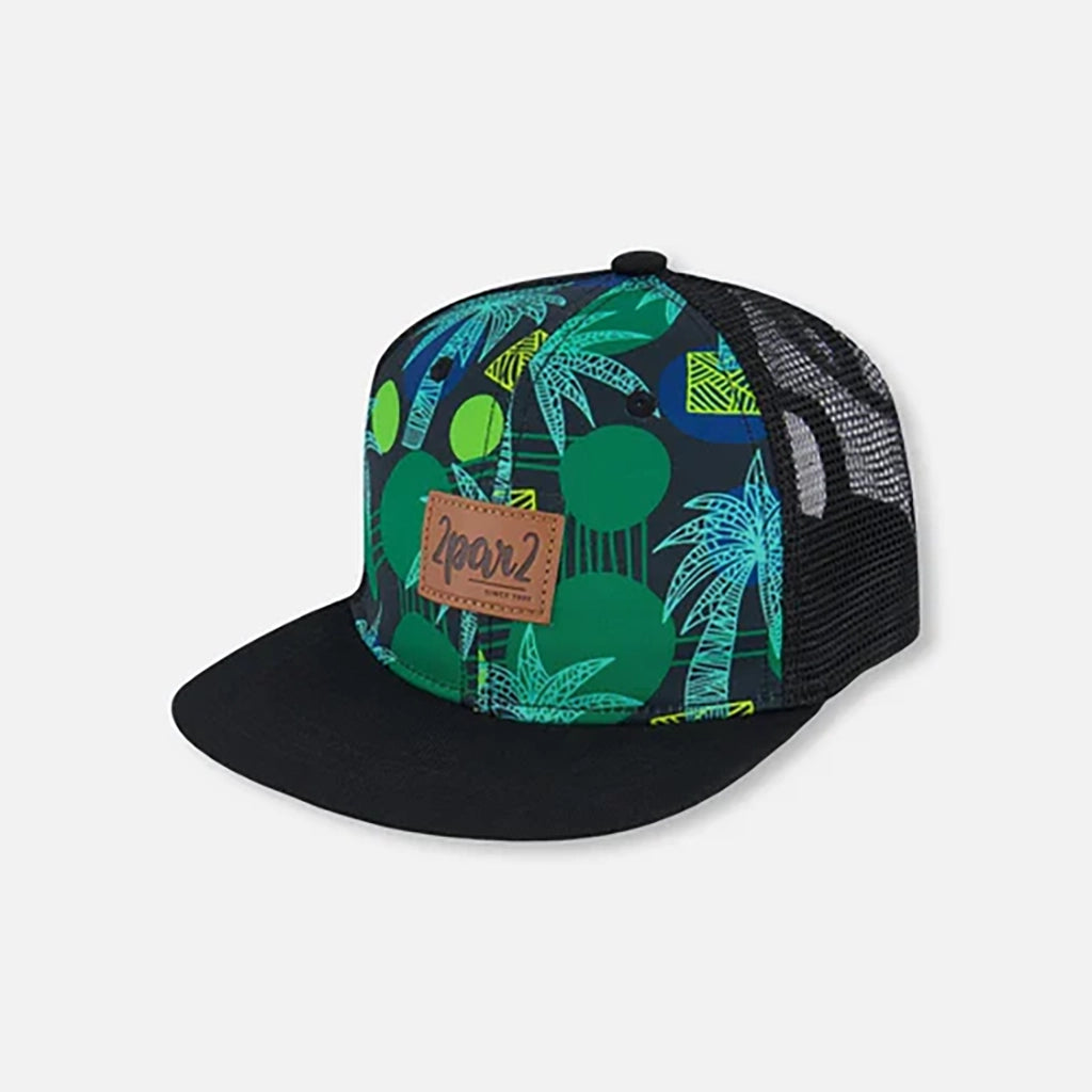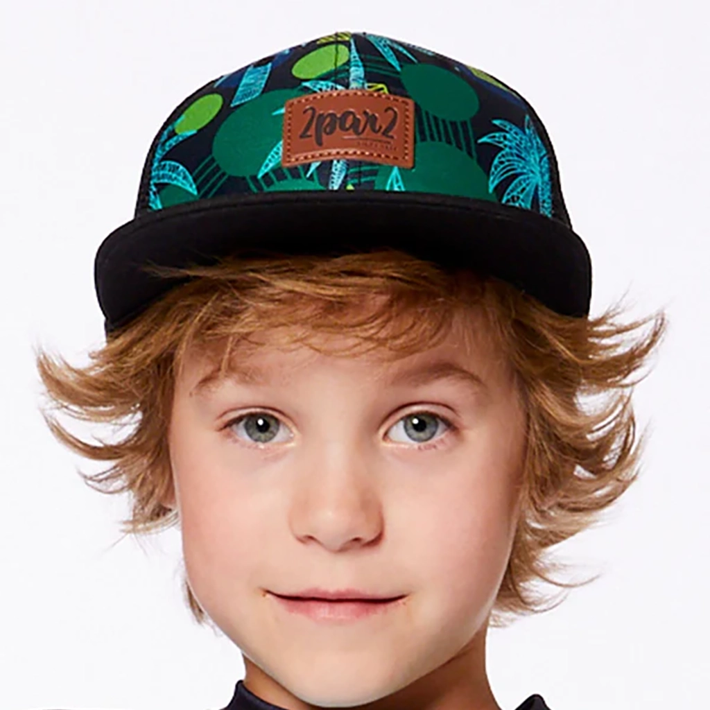 Protégez leurs petits yeux du soleil avec notre casquette imprimée avec jungle verte. Cette casquette classique est dotée d'une couronne à panneaux, d'une visière plate et d'un écusson logo sur le devant. Un imprimé intégral de jungle et palmiers permet de l'assortir facilement avec ses rashguards et shorts de bain préférés !