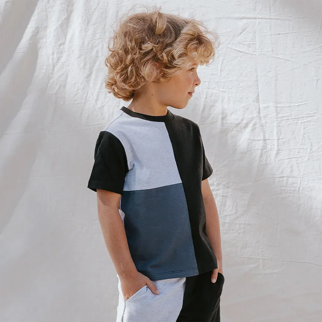 Miles - T-Shirt - Color-Block - Noir/Gris/Bleu