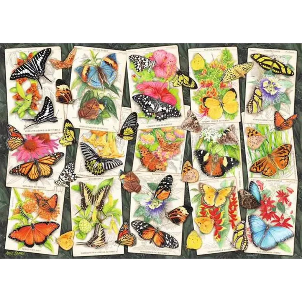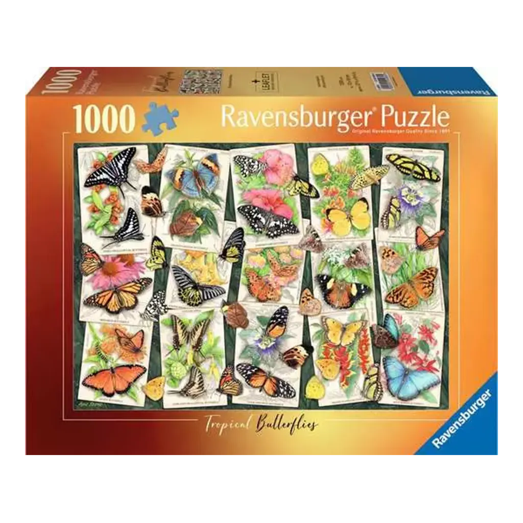 Célébrez ces merveilles ailées et émerveillez-vous devant leur métamorphose de chenilles à “Papillons tropicaux” avec ce superbe puzzle de 1000 pièces de l'artiste Anne Searle ! Chaque variété de flore et de faune est étiquetée afin que votre botaniste ou lépidoptère préféré sache avec certitude ce qui se passe. Du papillon morpho bleu aux fleurs de la passion au machaon zèbre sur une plante de papaye, ces insectes magnifiques et ces fleurs fabuleuses créent une image vibrante qui sera certainement un plaisir à deviner !