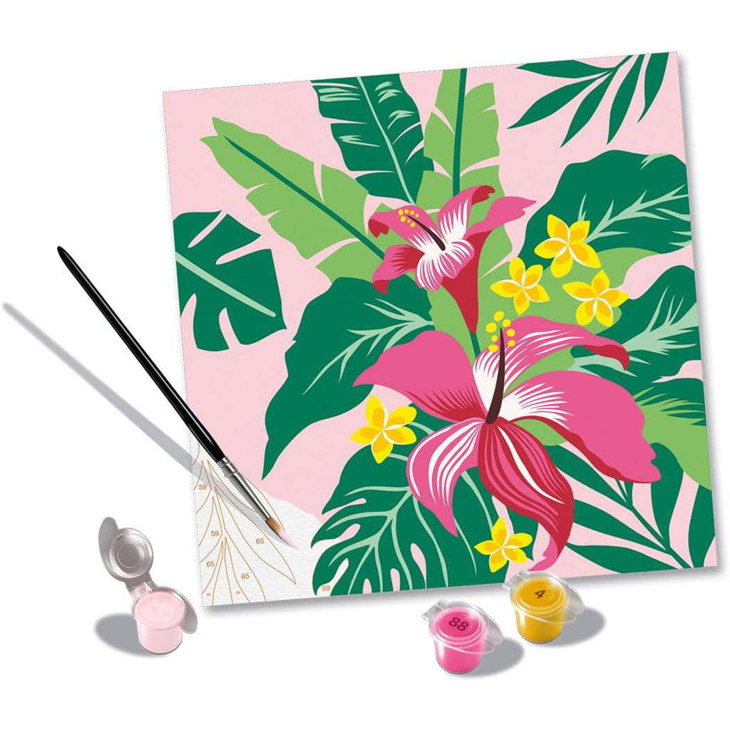 Faites une pause et profitez d'un moment de rajeunissement avec des fleurs rares dans notre ensemble CreArt Painting by Numbers “Tropical Plants” !