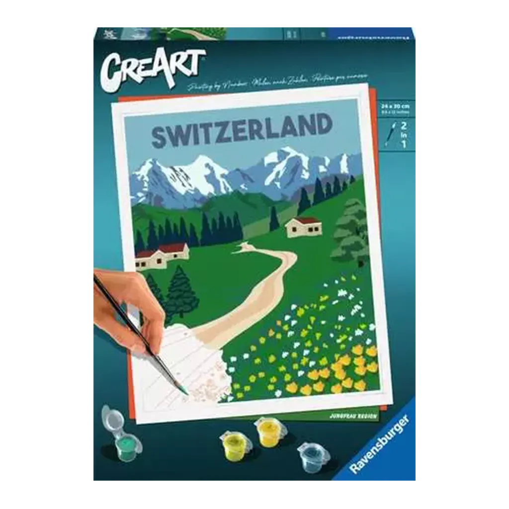 Faites une randonnée à travers un pays des merveilles alpin de montagnes et de prairies dans la “Région de la Jungfrau” en Suisse avec notre ensemble CreArt Painting by Numbers !Réputé comme l'un des plus beaux endroits d'Europe, ce kit de peinture par numéro CreArt “Région Jungfrau” vous mettra à coup sûr dans votre lieu de bonheur !