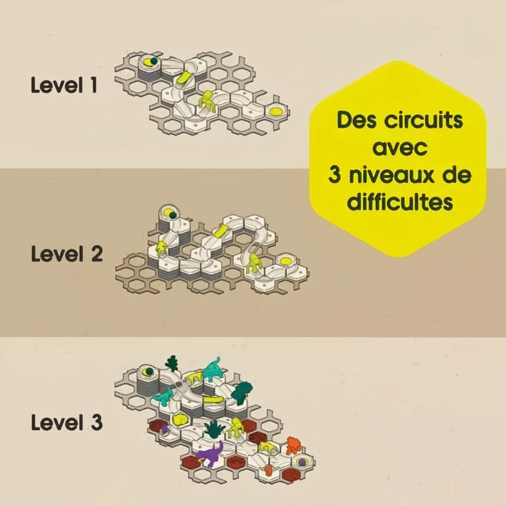Votre enfant thématise ses circuits et plonge dans un monde préhistorique et coloré GraviTrax pour créer ses plus belles aventures avec ses dinosaures ! Construisez un circuit et modifiez-le : GraviTrax se reconstruit à l'infini !