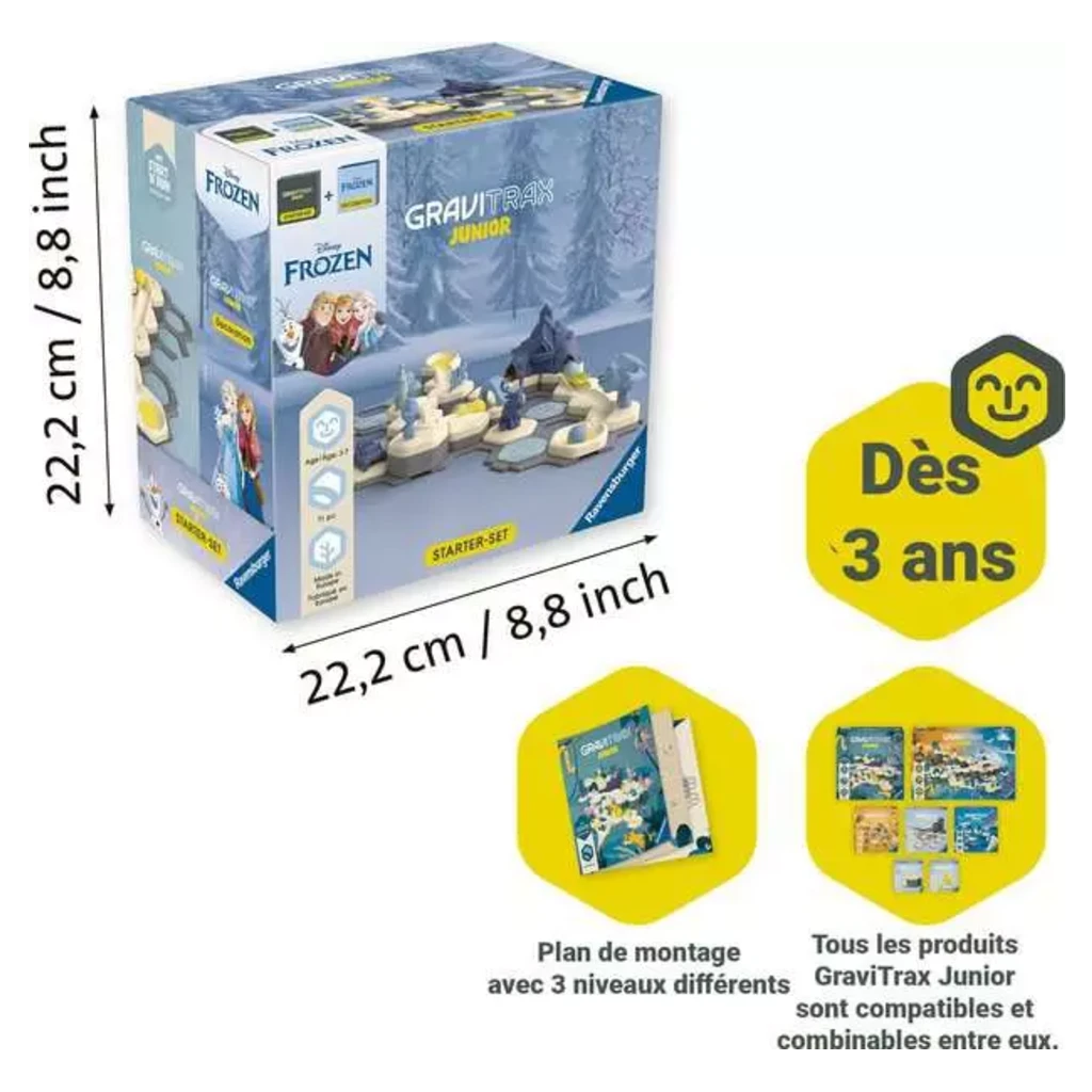 Construisez un circuit et modifiez-le : GraviTrax se reconstruit à l'infini ! Plongez au cœur du monde de glace avec ce coffret complet Starter Set La Reine des Neiges, comprenant 2 produits en 1 seul coffret.