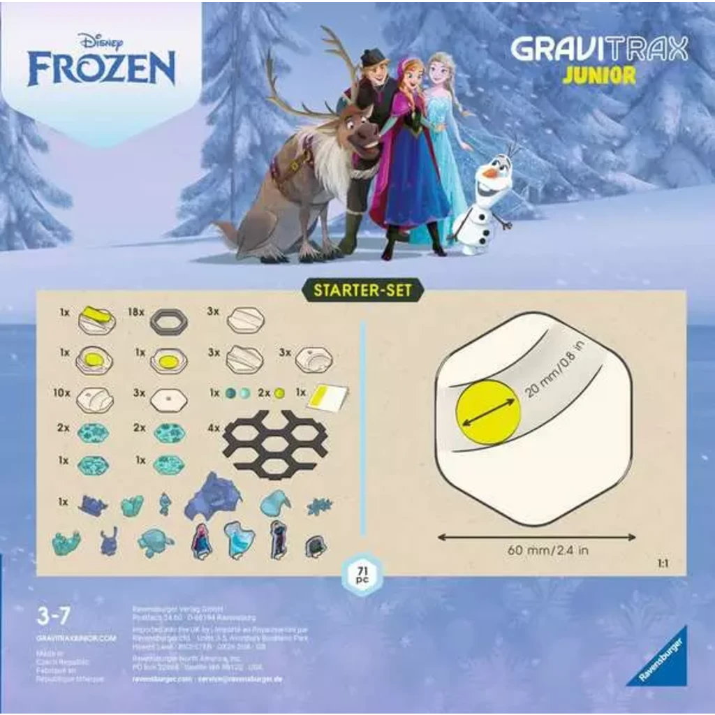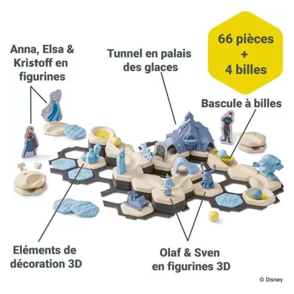 Imaginez un véritable univers aux décors inspirés du monde réel. Votre enfant thématise ses circuits et plonge dans un monde magique GraviTrax pour créer ses plus belles histoires ! Au total, 71 pièces sont à retrouver dont les pièces de jeu entièrement adaptées à La Reine des Neiges avec 9 personnages du Disney en 3D à ajouter au circuit.
